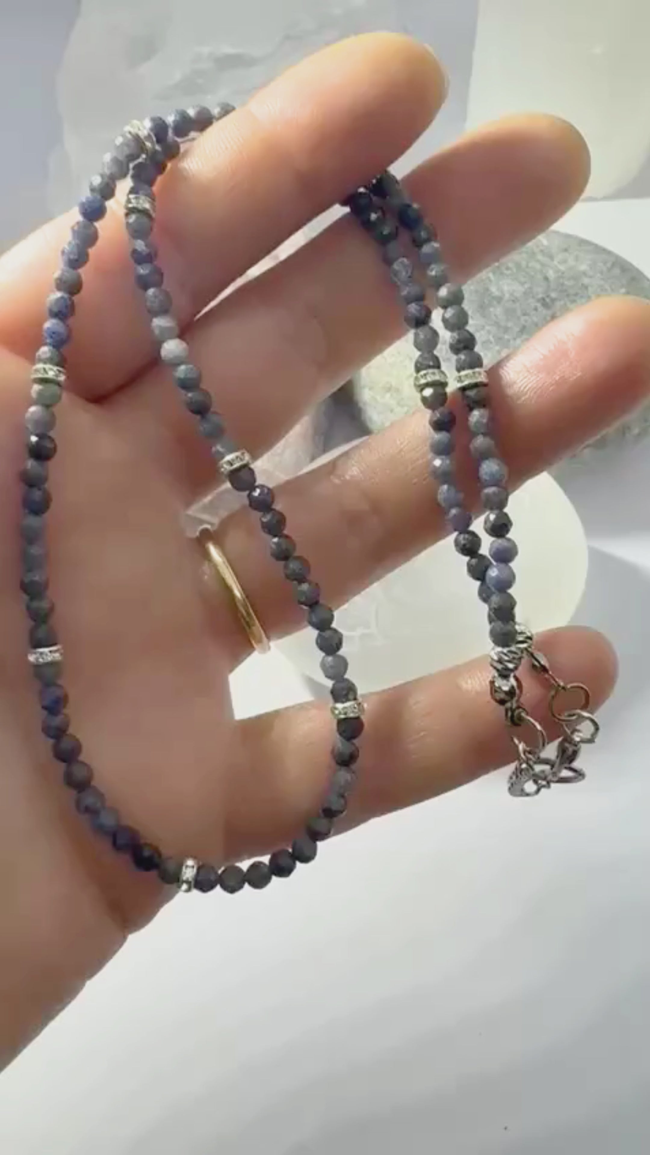 This Sapphire necklace is a handcrafted healing crystal jewelry piece designed for mental clarity, spiritual wisdom, intuition, divine protection, and higher awareness.